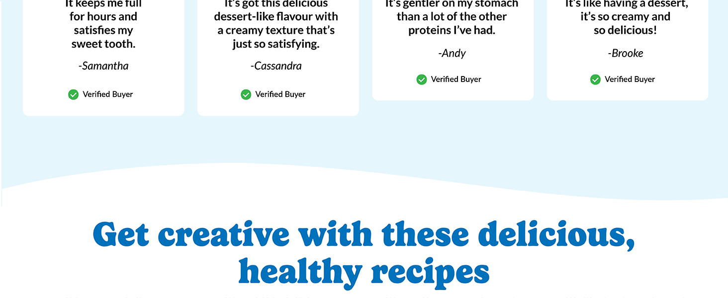 I like that it’s made with clean, simple ingredients. No artificial sweeteners, no dairy, gluten, or soy — just what I was looking for. It also has 21g of protein per scoop and keeps me full for a few hours, which is perfect for busy mornings or after the gym.